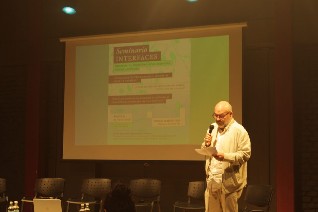 El pasado 19 de marzo de 2026 se realizó el Seminario Interfaces, un encuentro que reunió a artistas, investigadoras/es y creadoras/es en torno a las relaciones entre artes escénicas, música, archivos y tecnologías digitales. A lo largo de la jornada, las conversaciones fueron tejiendo cruces y preguntas sobre las formas en que estas prácticas se desarrollan en el contexto latinoamericano contemporáneo.