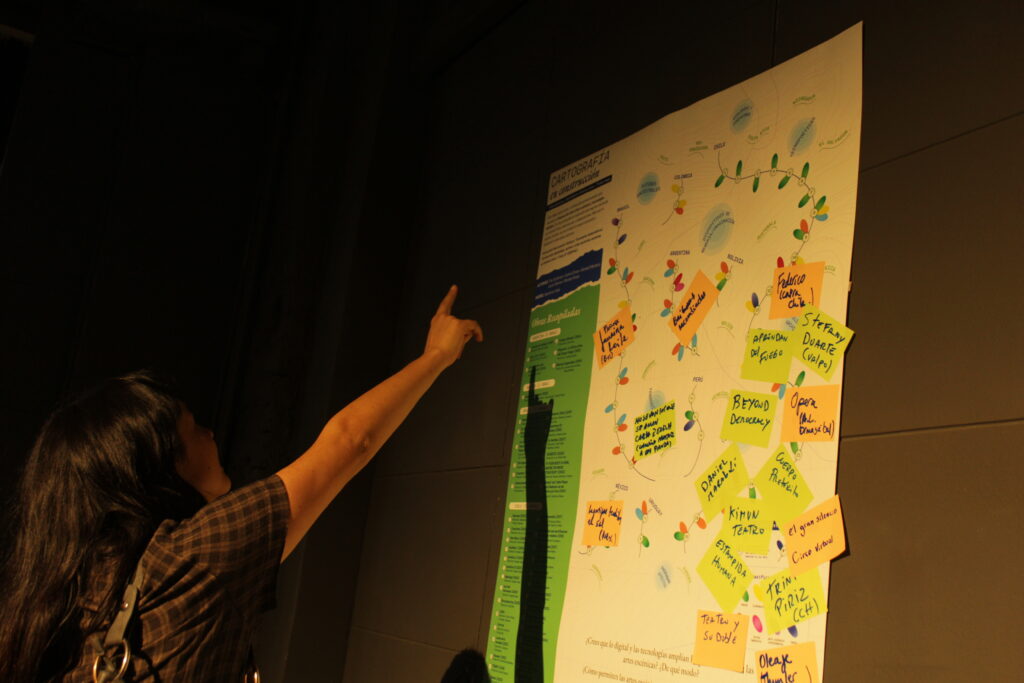 Este seminario constituyó el primer hito público del proyecto Fondecyt “Escenarios especulativos: vínculos entre digitalidad, archivo y artes escénicas recientes en América Latina”. Además de las mesas de discusión, el equipo presentó una primera cartografía, un registro gráfico de obras y artistas latinoamericanos/as que exploran la intersección entre escena, tecnología y digitalidad.