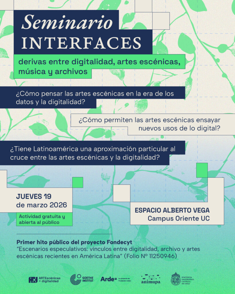 SANTIAGO, CHILE – ¿Cómo sobrevive lo efímero del teatro en la era de los datos? ¿De qué manera los entornos digitales han reconfigurado la creación, circulación y memoria de las artes escénicas en América Latina? Estas son algunas de las preguntas que abordará el seminario “Interfaces: Derivas entre digitalidad, artes escénicas, música y archivos”, que se realizará el jueves 19 de marzo de 2026 en el Espacio Alberto Vega del Campus Oriente de la Universidad Católica.